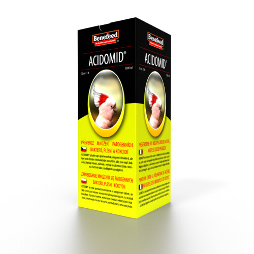 ACIDOMID® je špičkový výrobek moderní koncepce působící nejen proti množení patogenních bakterií, ale velice dobře také tlumí rozvoj a množení nitrobuněčných parazitů jako např. kokcidií. ACIDOMID® však není léčivo, neobsahuje ani kokcidiostatika a nezanechává tak rezidua v organismu. Nemá také ochranné lhůty.